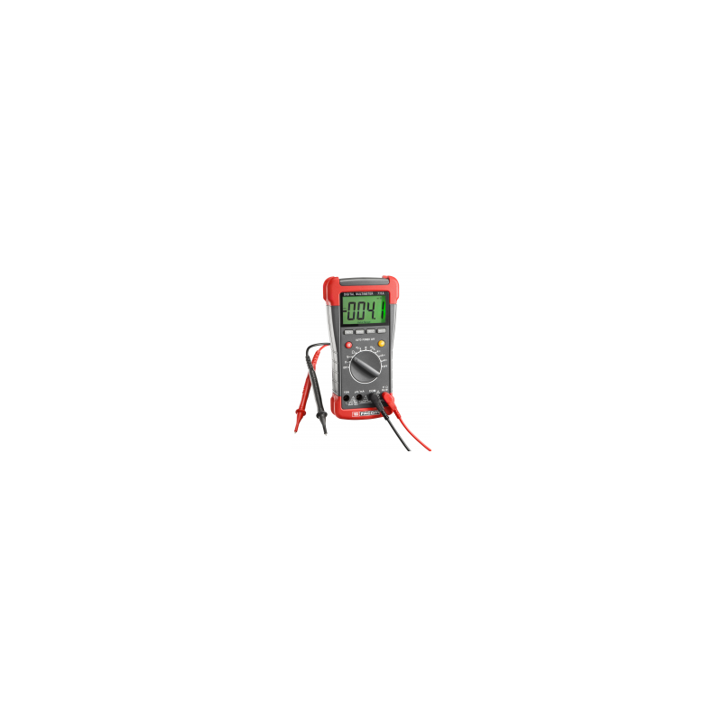 • Multímetro de manutenção. • Ideal para as reparações de conjuntos electrónicos ou electromecânicos e para a instrução. • Voltímetro DC/AC: 0 a 600 V. • Amperímetro DC/AC: 0 a 10 A. • Ohmímetro: 0 a 40 MΩ. • Capacímetro: 0 a 100 µF. • Frequencímetro: 0 a 100 KHZ. • Relação cíclica: 5% à 99%. • Teste díodo. • Teste de continuidade com avisador sonoro. • RMS 600 V CAT III.